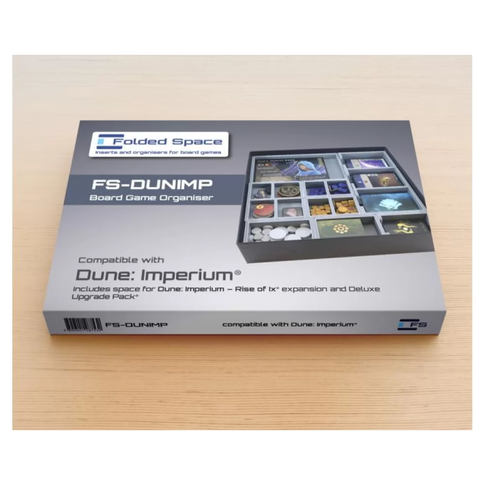 Insert compatible with Dune Imperium®, including the Dune: Imperium – Rise of Ix® expansion and the Deluxe Upgrade Pack® contents. The design provides both efficient storage and improved game play.