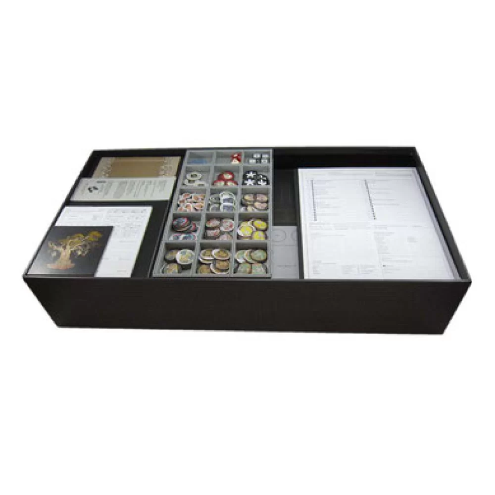Insert compatible with Kingdom Death Monster®, and the insert has space for a total of 1,300 standard sized cards and 440 gear cards in total. The design provides both efficient storage and improved game play. All of the trays can be utilised during the game, and they greatly aid set-up and clear-away times. The insert works together with the FS-KDM+ insert to store, in addition to the main game, many of the game’s expansions.