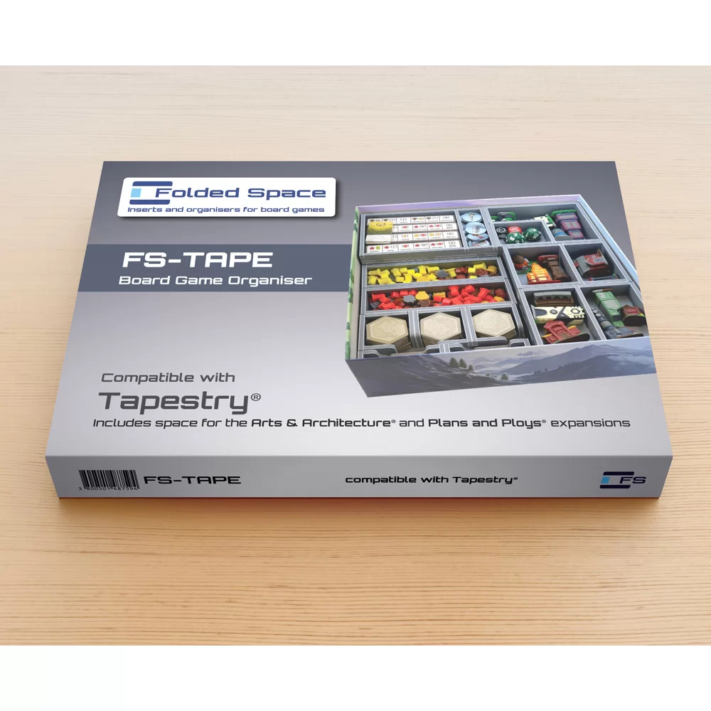 Insert compatible with Tapestry®, including the Plans & Ploys® and Arts & Architecture® expansions. The design provides both efficient storage and improved game play. Many of the trays can be utilised during the game, and they greatly aid set-up and clear-away times. The boards and rule books act as a lid on top of the trays.