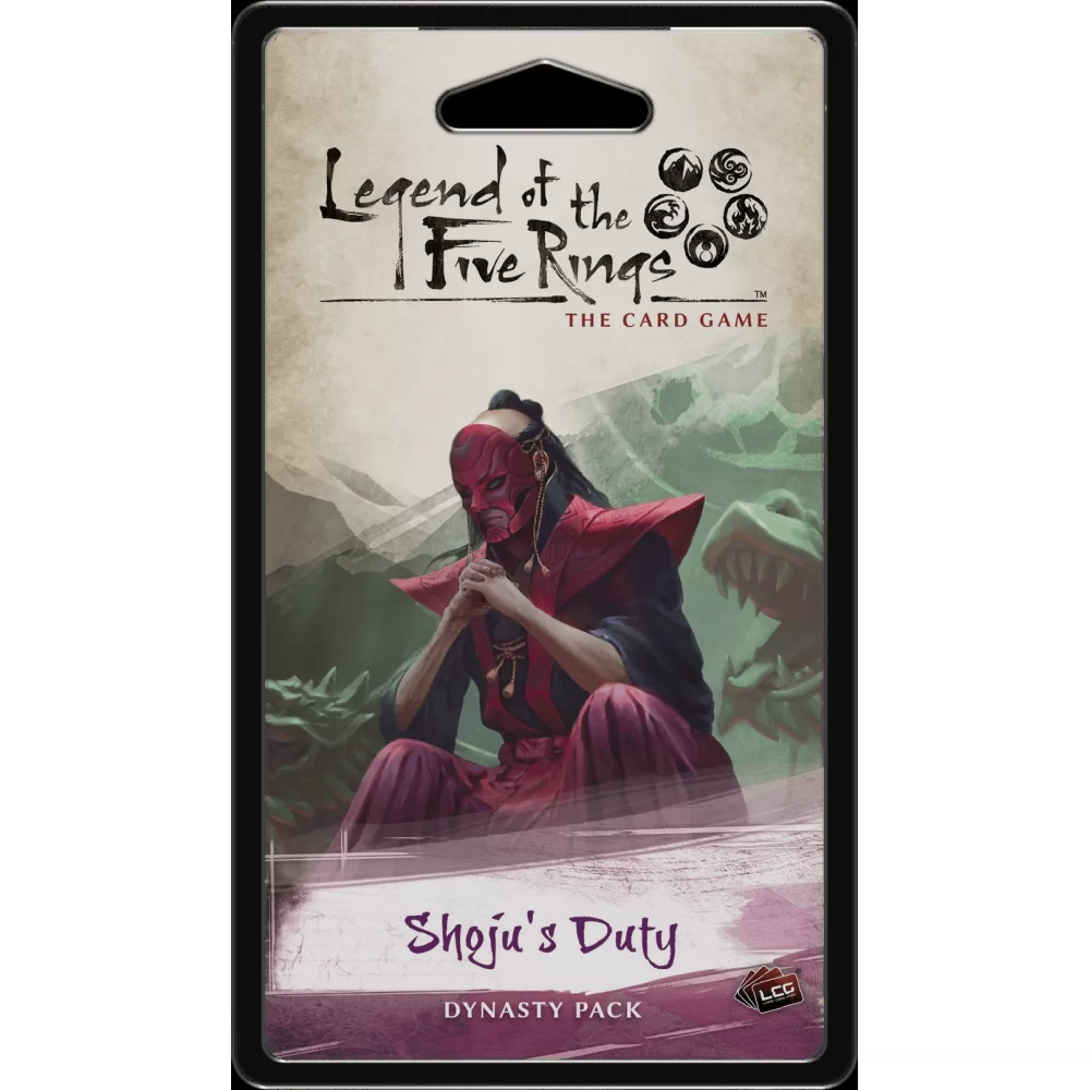 Shoju’s Duty is the final Dynasty Pack in the “Inheritance” cycle for Legend of the Five Rings: The Card Game, bringing the cycle to a dramatic conclusion with its focus on disguised characters and lending new weight to the Bushi and Courtier traits. Combined with a new version of the Scorpion Clan Champion, this will be a pack not to be missed!