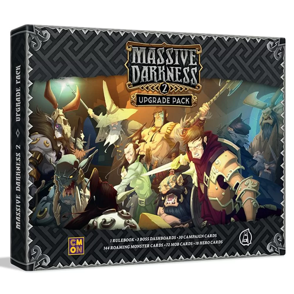 Massive Darkness Upgrade Pack provides 266 cards (kickstarter edition 369 cards) for all the miniatures (Heroes and Enemies) from Massive Darkness (and its expansions) to be usable with Massive Darkness 2: Hellscape.