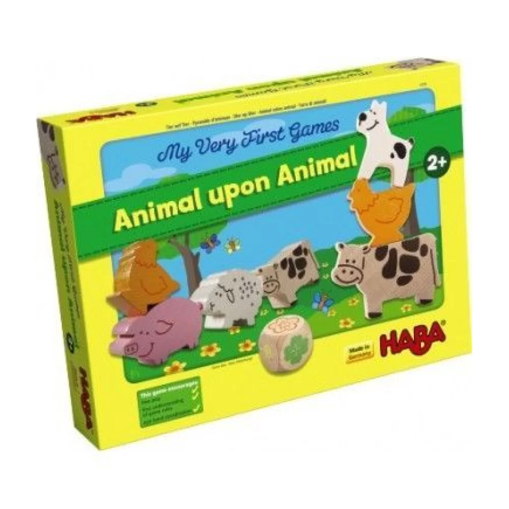 The animal stacking game, now for toddlers. This is a very basic game for very small children. You roll the die and stack the given animal on the matching tile and any other animals already stacked on that tile.