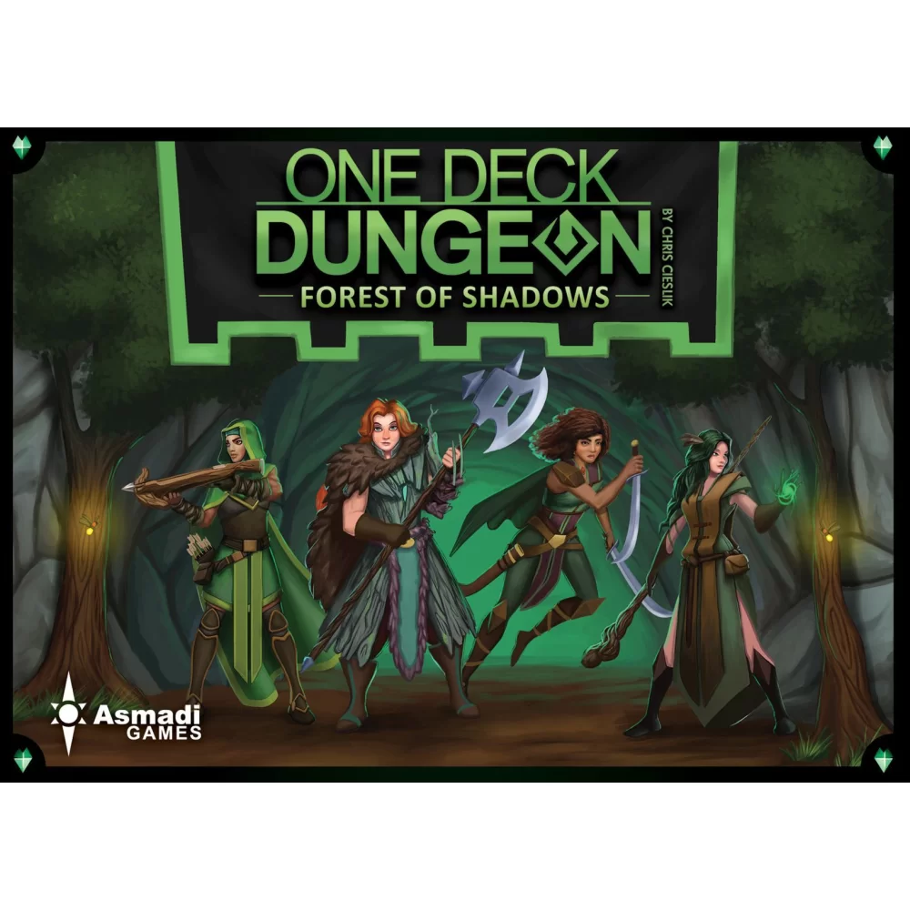 One Deck Dungeon: Forest of Shadows is a standalone expansion for One Deck Dungeon that contains new heroes, new dungeons, new perils, new foes, and new mechanisms: Poison and event Perils! It can be combined with the original game for a hybrid dungeon experience, with the heroes and dungeons being compatible with the original, or played on its own.