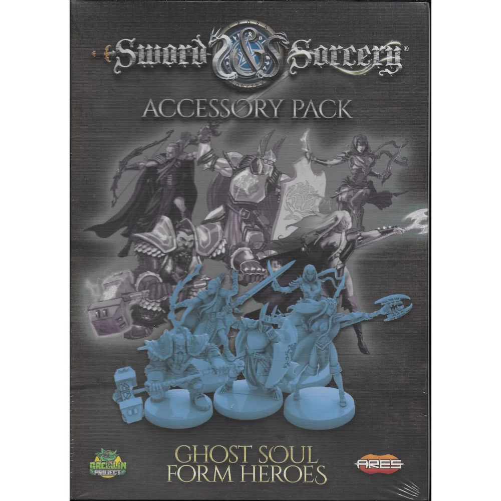 The Sword & Sorcery: Ghost Soul Form Heroes pack includes double-sided Background Talent cards allowing optional additional talents to heroes. It also includes a set of miniatures to replace the figures of the heroes while in ghost soul form.